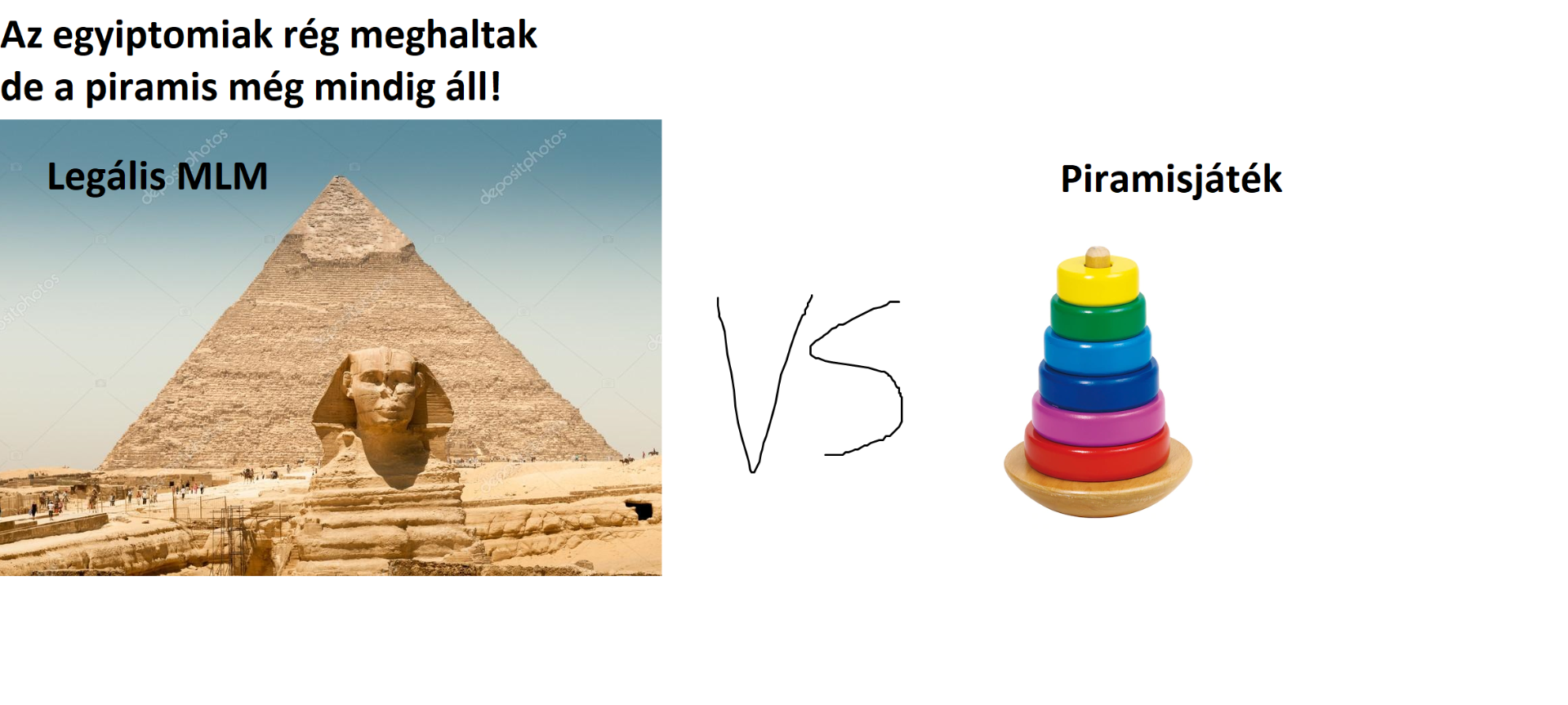 Az MLM az legális és lehet adót fizetni utána a piramisjáték pedig illegális és nem lehet adózni utána vagy ha mégis akkor is hamar eltűnik a piacról, illetve a tőzsde is piramisjáték amit valahogy sikerült legalizálni de alapvetően az a különbség a 2 között, hogy az MLM be a munkád után megkapod a pénzed a piramisjátékokba pedig csak akkor kapod meg a pénzed ha időben csatlakoztál (a tőzsde is piramisjáték de az legális mert napi szinten rengetegen csatlakoznak)